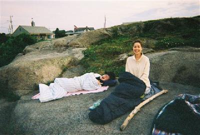 Allie, Amy and I decided to head up to York Beach, Maine after evening Bible study on the 24th of June. We didn’t get on the road until about 12:30am, and wouldn’t you know, we hit a traffic jam. Only in Boston. We made it up to the coast by about 2am and discovered that the tide comes in higher than I remembered, and that sleeping on the sand might not be as pleasant an experience as we’d anticipated. We opted instead to head up to Nubble Lighthouse and camp out on some friendly boulders overlooking the surf. We set up camp, and then Amy had to use the facilities. Trouble was, there were no facilities. Anywhere. And she wasn’t willing to use nature’s facility “as long as [she] knew [she] was going to be hanging around it the next day. So we drove back into town. On the way in, we met a suspicious road block that hadn’t been there only an hour earlier. Mind you it was almost 3am. We decided it was a trap and that we were either going to be slaughtered by the Traffic Cone Killer himself, or else ruin a teenage prank… We ruined a teenage prank. I pulled the get-away car up to the line of traffic cones; Amy catapaulted out of the car and (while gracefully losing a flip-flip) hurled two of the cones out of the way so we could pass; Allie sat at the ready with a giant piece of driftwood we found, in case the teenagers hiding behind a nearby stone wall got ugly on us. All they did, though, was send out their ringleader, who ran down the road after us yelling, “That is so uncool! That is so uncool!” to demonstrate his limited vocabulary. Anyway, we made it through to town and looked for a gas station. It was closed. We finally found a hospital and dropped Amy by the curiously vacant emergency room entrance; she emerged 5 minutes later, unscathed and much relieved. We made it back to our perch on the rocks, star-gazed and ate pistachios, and managed a few winks of sleep before sunrise. The fishermen who arrived around 5am didn’t seem to be bothered by the three homeless kids camping out on the cliffs; they just stepped over us, nodded and grunted good morning, and cast their lines. We didn’t see the “parking overnight prohibited” sign until daylight, which was … quite convenient ;o)